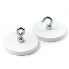 Rubber coated pot magnet with screw socket 43x10 mm white